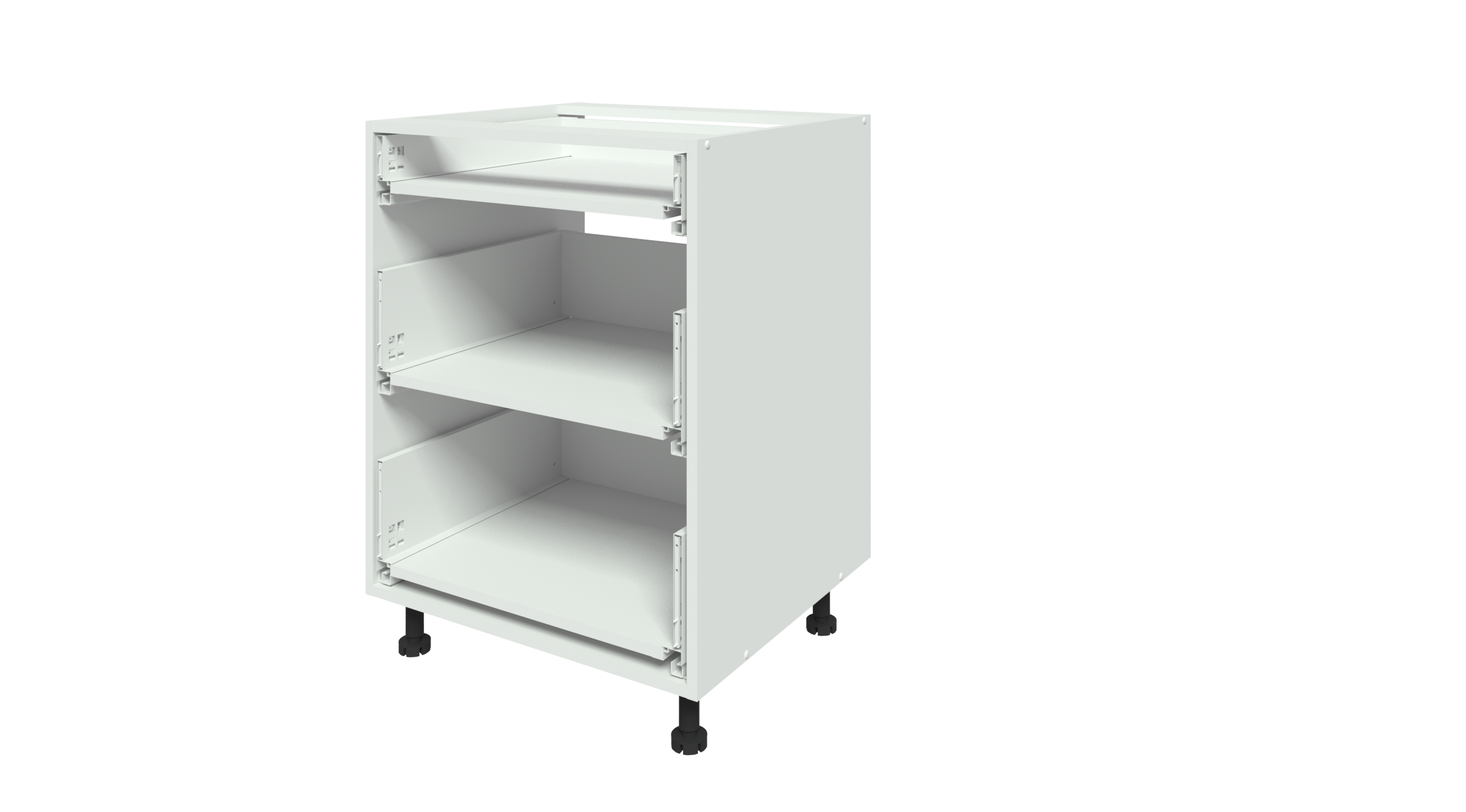 Szafka 60 dolna z szufladami Kuchnia RESTOL (KU-D60S3). Korpus z frontami z płyty MDF oklejonej folią PVC. Wykonany jest z płyty wiórowej laminowanej o grubości 18 mm. Wewnątrz znajdują się 3 szuflady. Korpus stoi na 4 nóżkach o regulowanej wysokości (w zakresie 9,5-16,5cm). Nóżki wykonane są z wytrzymałego tworzywa, mają one specjalny kształt umożliwiający jednoczesne podparcie boków i wieńca dolnego, co znakomicie poprawia wytrzymałość całej szafki. W zestawie dołączony jest kpl. klipsów umożliwiający montaż cokołu dolnego (cokół należy dokupić oddzielnie)